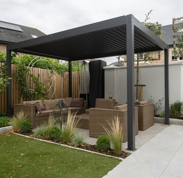 For luxury villas, full backyard gardens, or rooftop terraces, large or custom villa pergolas are an increasingly popular choice. Sizes 7x7m and above often require additional engineering and specialized installation. Basic aluminum modern pergola Dubai options for large setups start around AED 100,000, while premium motorized pergola Dubai or retractable pergola Dubai systems can reach AED 200,000 or more. Luxury features such as glass roofs, smart automation, integrated lighting, or bioclimatic control further increase costs but offer unparalleled modern outdoor living Dubai experiences.